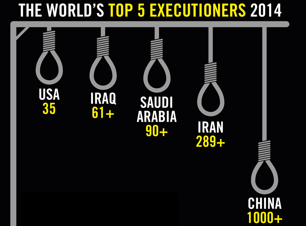 “There is no evidence that the death penalty has a greater deterrent effect on crime than terms of imprisonment”, according to Amnesty International's report Death Sentences and Executions 2014, published on April 1, this year. Worldwide, by the end of 2014, at least 19 094 individuals were under a death sentence. The number of people known to have been sentenced to death increased by 28% from 1925 in 57 countries in 2013 to at least 2466 in 55 countries in 2014, largely because of mass sentencing in Egypt and Nigeria. Alarmingly, in most countries, the death penalty was given after trials that did not meet international standards of fairness.