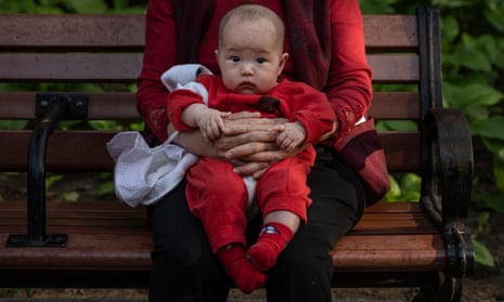 A woman holds a baby at a local park in Beijing, China. China’s population has shrunk for the first time since 1961.