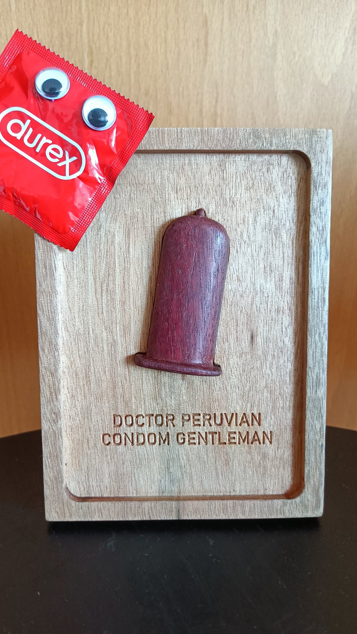 After four years of being introduced as "The Peruvian condom gentleman", I can proudly share that I passed my defence... which means I can finally put this amazing gift on display! Thanks a lot to those who tolerated, enabled and even encouraged all my weird ideas! #PhDone
